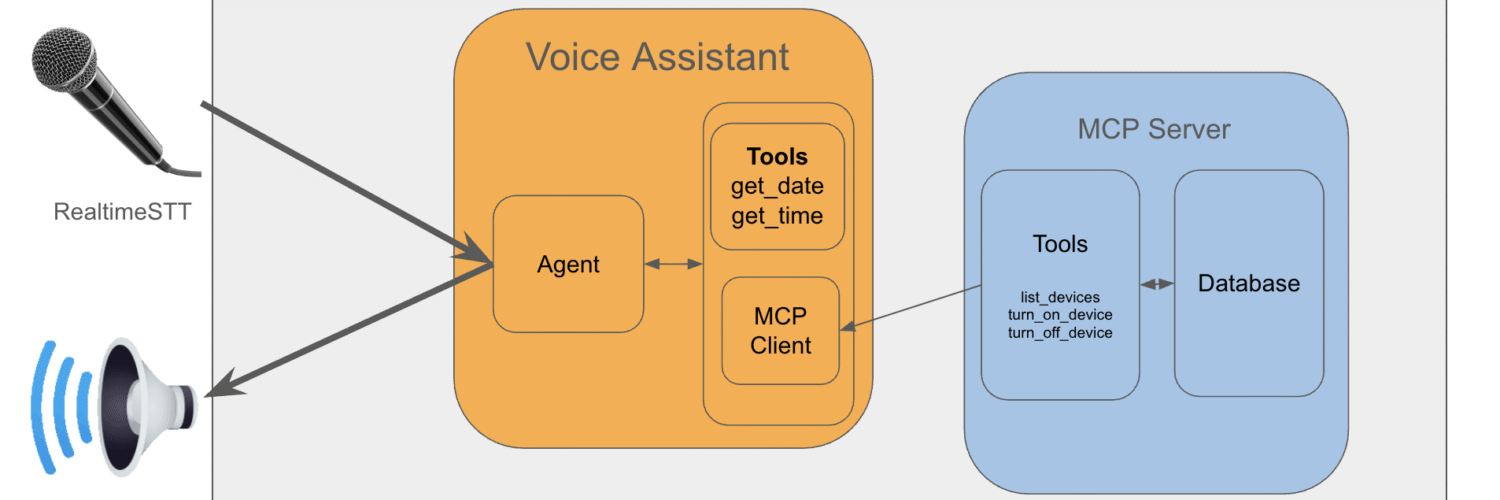It also needs tools to interact with smart-home devices, but the implementation for this can get quite involved so we implement this in a separate MCP server.