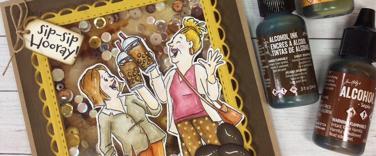 We will be creating a beautiful coffee/tea background using our Alcohol Inks in Espresso, Sepia, Butterscotch, and Snow Cap. I will show you exactly how I did this in today’s video! If you haven’t used your alcohol inks in a while you may want to pull them out and play with them after you see them in action on this card.