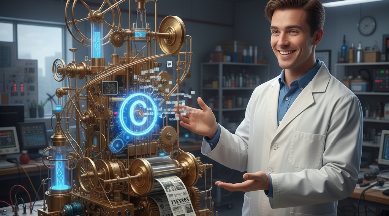 “a creative image, artistic drawing style, of a stream of words turning into bitcoin through a computer terminal. A person is typing on the keyboard and bitcoin is flowing out like a ticker tape.”