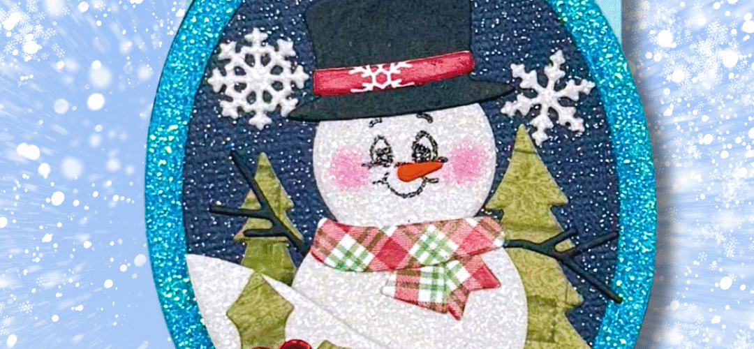 Once the paper piecing was done, I cut out the base gift card holder and glued it together. Then it was simple to attach the snowman scene to the front of it with adhesive. He’s a super gift and would be a pleasure to receive along with a gift card or cash which tucks into the back of the gift card holder.