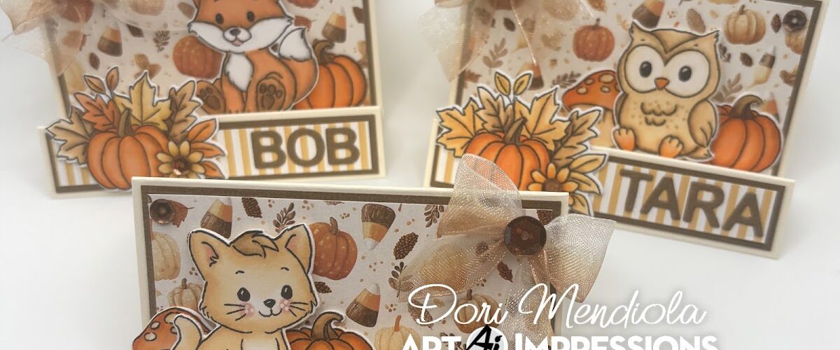 Have you checked out the newest challenge called “Gobble Gobble” on the AI blog?  Super fun and simple to play.  Just anything fall or thanksgiving themed.  I thought placecards would be fun for this challenge especially using the newly released stamp set #6105 – Fall Keepsake set.  Perfect for your thanksgiving table!