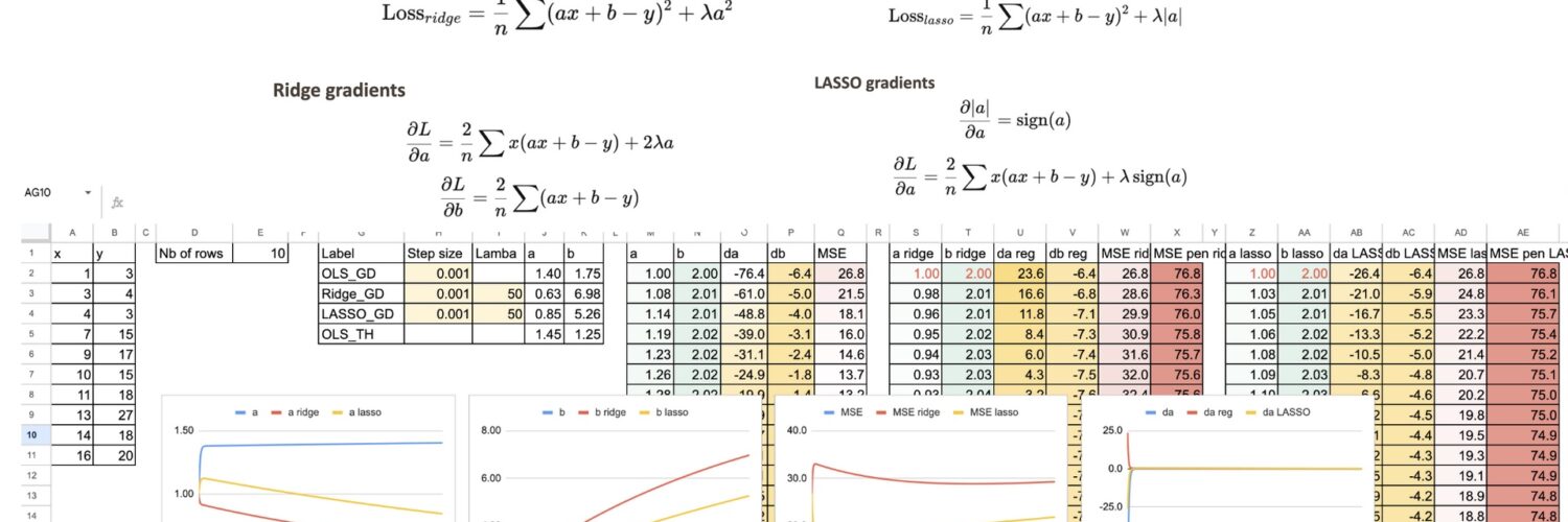Ridge and Lasso do not change the linear model itself, they change how the coefficients are learned. By adding a penalty, regularization favors stable and meaningful solutions, especially when features are correlated. Seeing this process step by step in Excel makes it clear that these methods are not more complex, just more controlled.